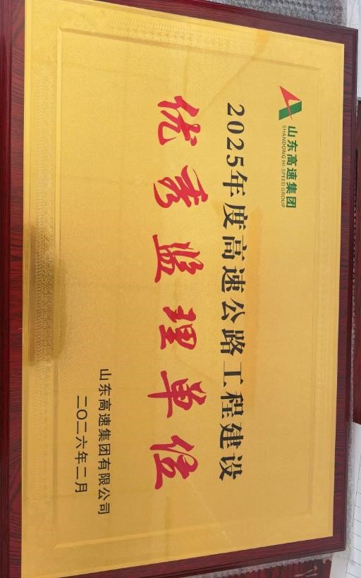 當(dāng)前位置:網(wǎng)站首頁(yè)>>監(jiān)理咨詢| 監(jiān)理公司榮獲山東高速集團(tuán)“2025年度高速公路工程建設(shè)優(yōu)秀監(jiān)理單位”稱號(hào) |